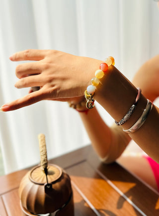 "Affection Orbit" circles the heart with warmth and intimacy. Like planets drawn to their sun, this agate bracelet gravitates towards emotions, reflecting the deep hues of care and attachment.